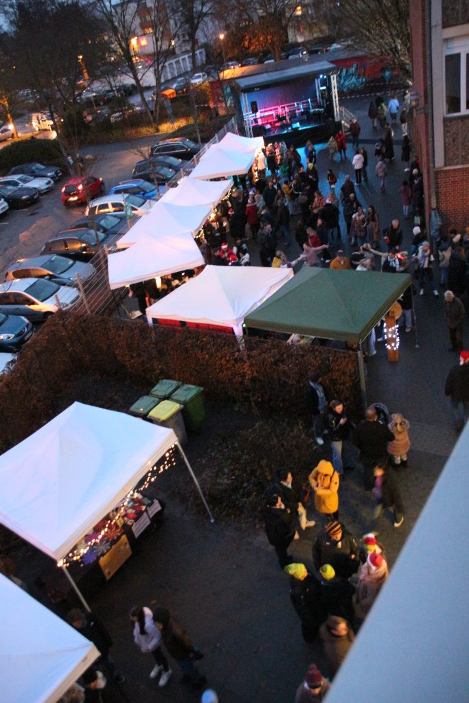Es war wieder soweit. Am vergangenen Freitag öffnete die Sertürnerschule ihre Türen, um auch in diesem Jahr wieder den traditionellen Adventsmarkt auszurichten. Im Vorfeld hatten die Schülerinnen und Schüler und das gesamte Kollegium geplant, gebastelt, geprobt und organisiert, um den Besuchern ein abwechslungsreiches Programm bieten zu können. Und so entstand auf dem veränderten Schulhof ein richtiges kleines Weihnachtsdorf mit vielen Ständen. Es wurden gebastelte Dinge präsentiert, vielerlei Köstlichkeiten angeboten und auch die begehrten Deko-Artikel aus dem Werkraum fanden wieder ihren Platz. Die Mensa verwandelte sich in ein weihnachtlich geschmücktes Café, in dem Waffeln und verschiedene Getränke genossen werden konnten. Ein Highlight war, wie in jedem Jahr, die professionelle Bühne, auf der die Klassen unter Leitung von Herrn Betker weihnachtliche Lieder vorführten. Als krönender Abschluss stand dann noch der vielumjubelte Auftritt der Schulband „Blackout“ auf dem Programm. Die zahlreichen Besucher, unter die sich auch einige Clowns und der Nikolaus mischten, verlebten einen schönen Nachmittag, der gleichzeitig einen stimmungsvollen Start in die Vorweihnachtszeit markierte.